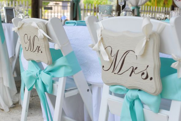 Any and all inspiration photos I have found show the signs tied to the rungs of chivari chairs or draped over the side, like you can see in the photos above. I have been racking my brain to try and find a solution, but keep coming up empty-handed.