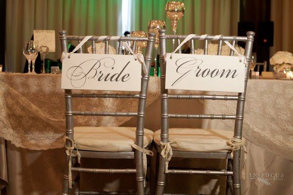 And so I turn to you lovely bees. Is it possible to have chair signs on rounded, covered chairs? Or is it time to give up the dream and come up with a different way to display them (maybe something similar to Miss Wizard's framed "Mr. & Mrs." sign for her head table)?